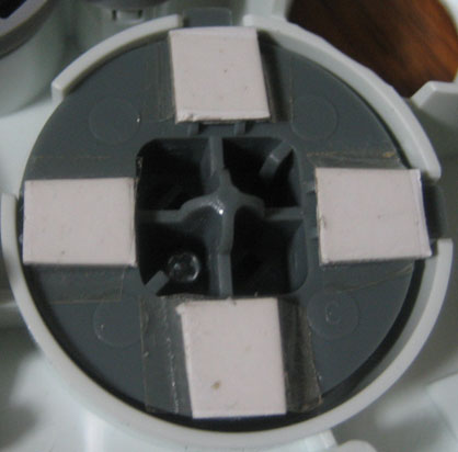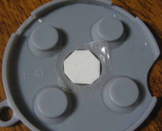 ゴムパッドを外すと十字キーの裏側が見えます。今回はこの十字キーの裏のゴムパッドが接触する部分だけに厚紙を貼り付けます。